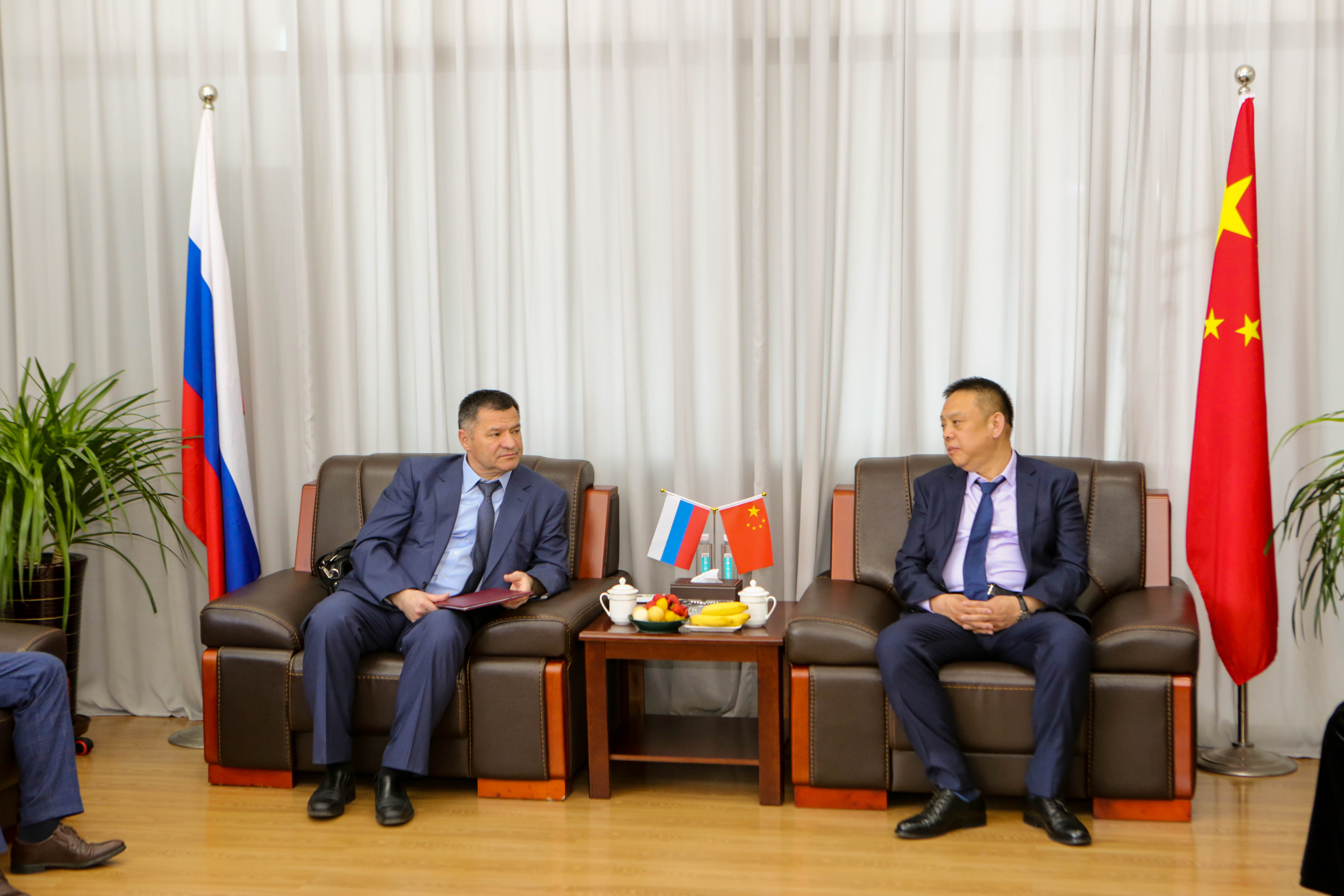 薩哈(雅庫(kù)特)共和國(guó)政府主席塔拉先科與黑龍江德碩實(shí)業(yè)有限公司董事長(zhǎng)董永兵會(huì)談