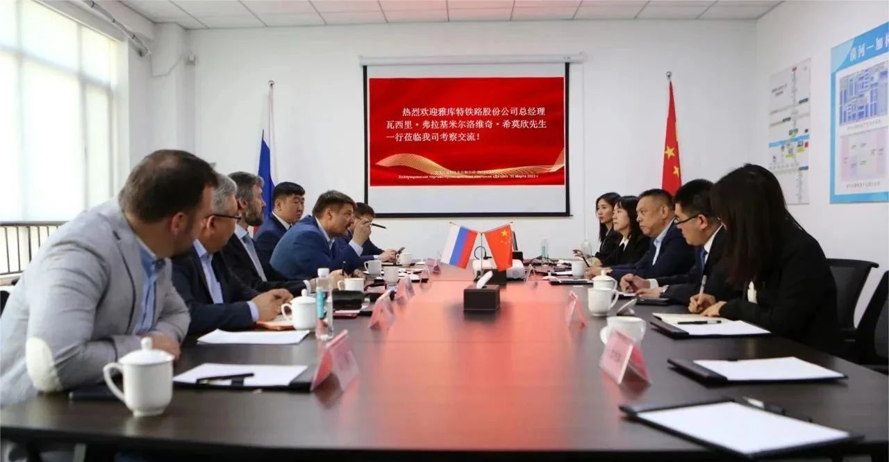 今年2 月雅庫特鐵路代表團曾到訪公司,雙方已就漠河—加林達(dá)口岸項目建設(shè)及發(fā)展規(guī)劃方面的合作達(dá)成初步共識。本次瓦西里·希莫欣總經(jīng)理一行再度到訪,雙方就深化合作與推動項目落地進(jìn)行了深入交流,并商定了合作模式、實施路線圖等細(xì)節(jié)問題。